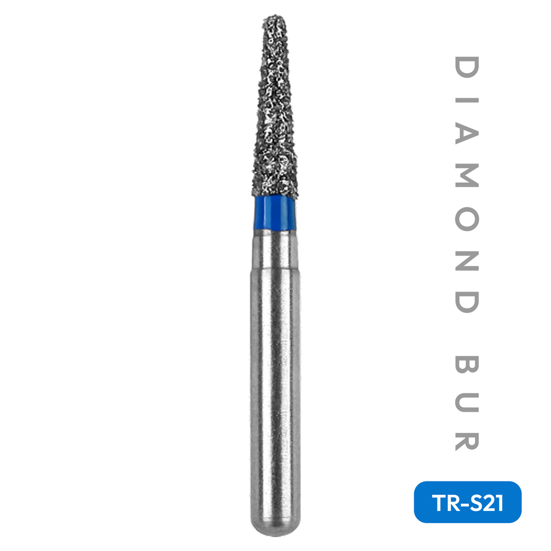 TR-S21 short taper conical diamond bur for precise crown prep, axial reduction & margin refinement in confined areas.