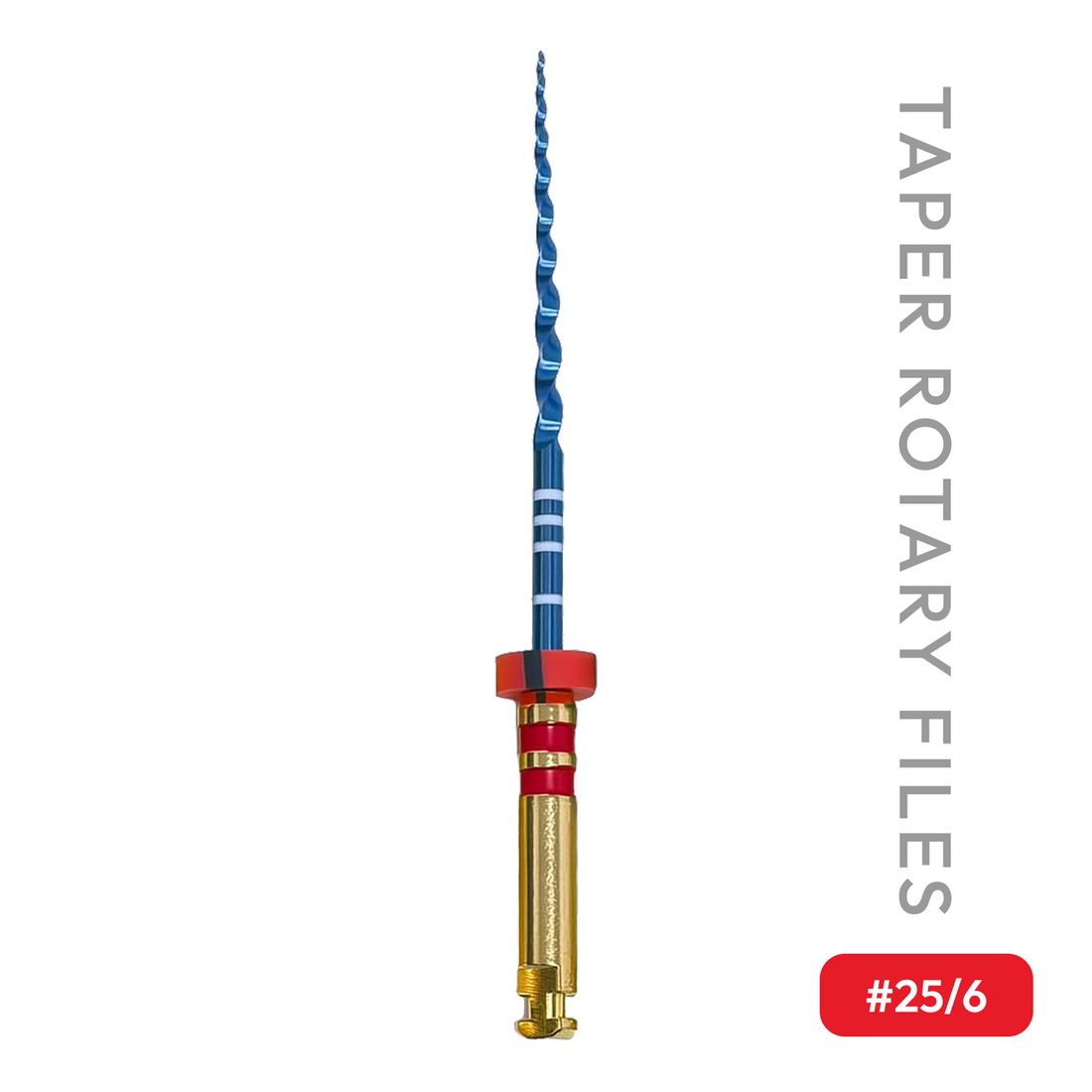 Premium NiTi Rotary File #25/6% Taper 21mm file ensures efficient shaping and cleaning. 21mm length ideal for tight posterior access and molar anatomy.