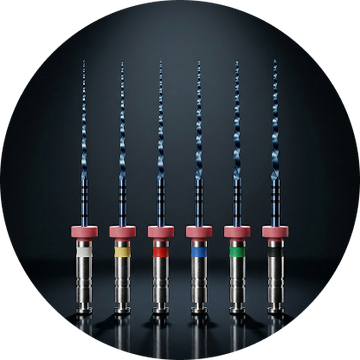Heat-treated NiTi rotary file #30/4% taper and 21mm length for flexible, fatigue-resistant shaping in narrow, curved canals.